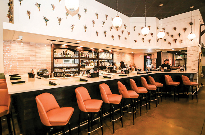 Easy Like Sunday serves up more than 15 craft cocktails. There is also a drink specials board. Kokolis stated, “Our most popular is probably The Wallflower, which is a tequila-based drink. People love that we put a live orchid on top. Everything here is about what tastes good, but also what looks good. If a drink is ‘cute,’ women customers are going to order it. Another big favorite is our Sunday Love, which is a lemon vodka drink. Our male customers love our Maple Fashioned. It’s like an Old Fashioned, but we’ve added some maple syrup and orange bitters to it. It pops! We also have lavender rose ice molds, and we put edible glitter inside and it makes for a beautiful drink.”