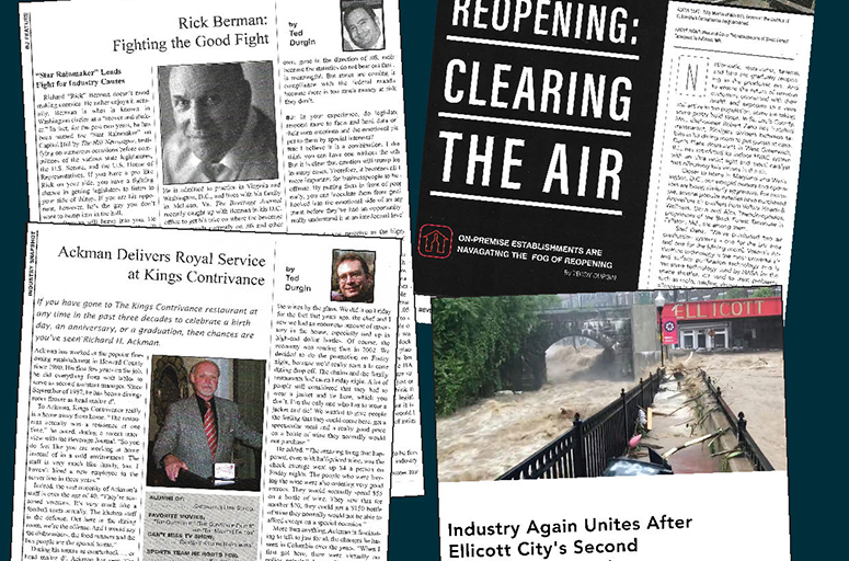 Some stories, of course, stand out more than others. I was privileged to cover the aftermath of both tragic floods in Ellicott City from the local bar and restaurant owners’ perspectives. Never have I ever felt such responsibility as a journalist and storyteller as when I was interviewing those proprietors and their staffers and how those two tragedies had changed their lives so thoroughly. Covering those two tragedies, I realized how much this industry takes care of its own! The outpouring of support was overwhelming from other bar, restaurant, and tavern owners; packaged goods store operators; and beverage distributors and suppliers. As a journalist, I try and keep my personal emotions out of the stories I tell as much as possible. It was darn-near impossible with those columns.